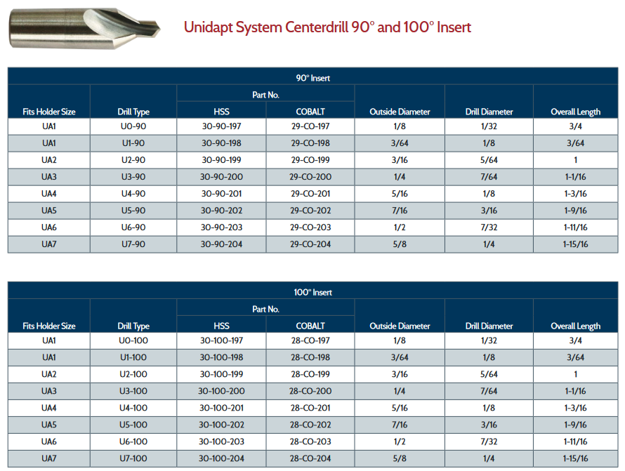 UA1-U1-100 DEGREE TYPE COBALT CENTERDRILL