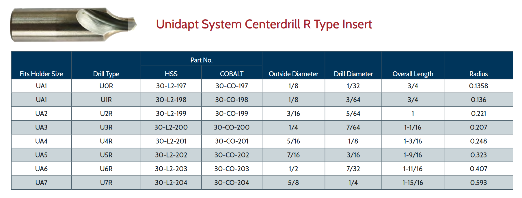 UA5-U5R TYPE COBALT CENTERDRILL